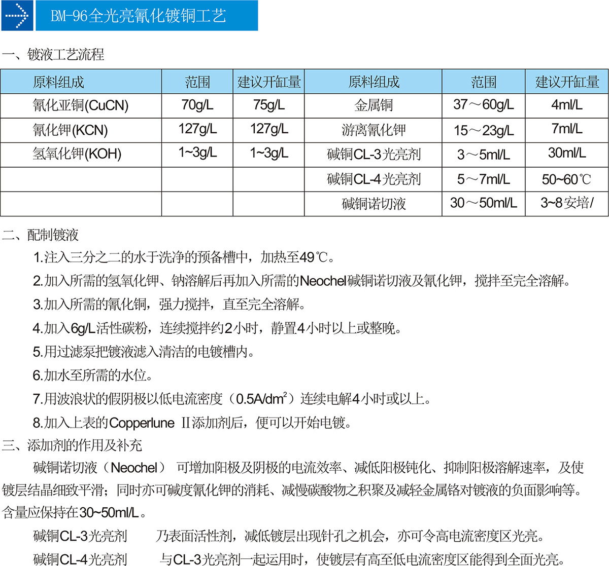 BM-96全光亮氰化镀铜工艺